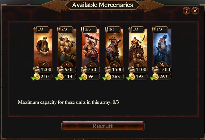 - Ogre mercenary pools now replenish at a rate of 1 unit every 5 turns